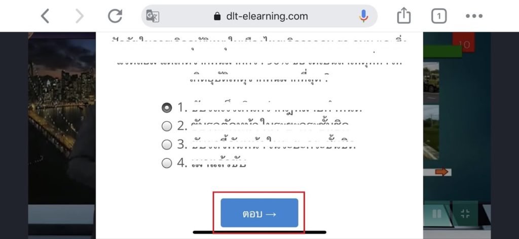 ลักษณะของข้อคำถามตามภาพด้านล่าง ให้เลื่อนลงมาเพื่อเลือกคำตอบ จากนั้น กดปุ่ม “ตอบ”