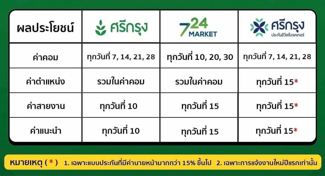 9.ผลตอบแทนจ่ายตรง ผ่านธนาคารกสิกรไทย ค่าแนะนำ+ค่าสายงานศรีกรุงโบรคเกอร์จ่ายผ่านแบงค์กสิกร ค่าคอมจ่ายผ่านได้ทุกธนาคาร