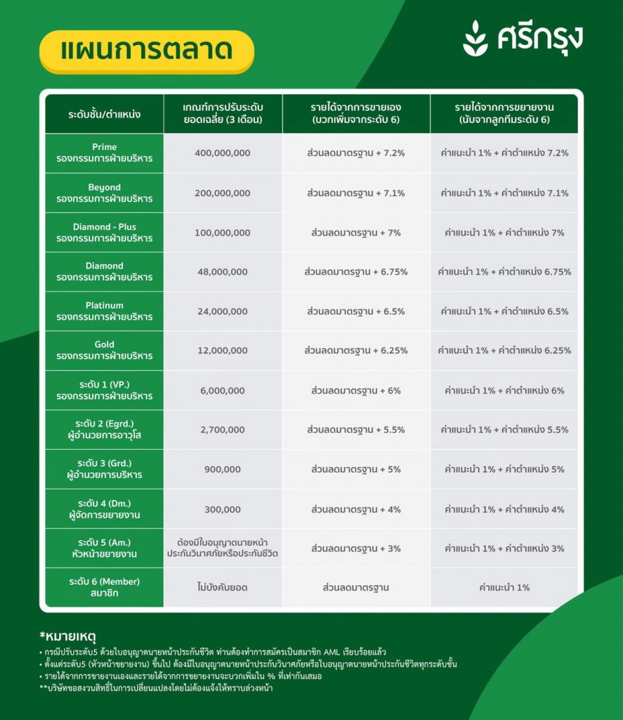 - การปรับระดับขึ้นมีผลต่อค่าคอมมิชชั่น และค่าบริหารทีมงานที่เพิ่มขึ้นในแต่ละตำแหน่งที่ท่านได้