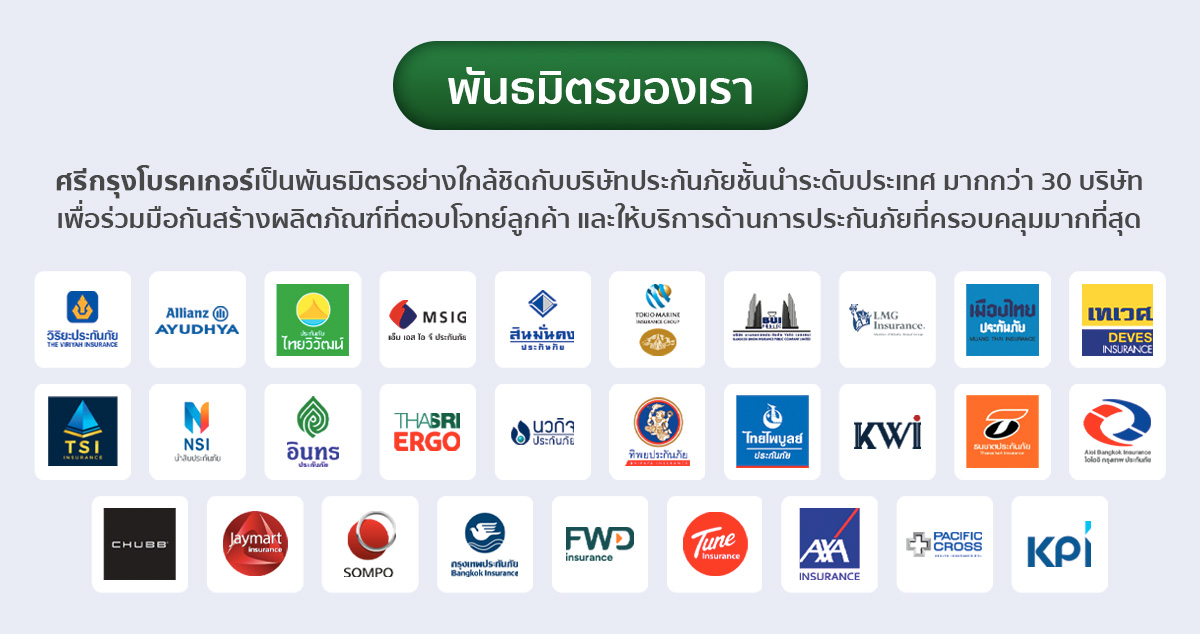 ธุรกิจประกันภัยครบวงจร ศรีกรุงโบรคเกอร์ เช็คเบี้ยแจ้งงาน มากกว่า 35 บริษัทประกันภัย เปิดรับสมัครนายหน้าประกันภัยรถยนต์ ตัวแทนประกันภัยรถยนต์ ไม่จำกัดวุฒิ ทำเป็นรายได้เสริม ซื้อเองก็คุ้มสุดๆ