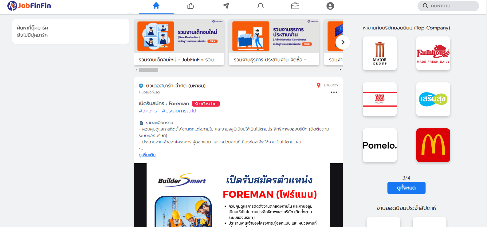 วันนี้จะมาแนะนำเว็บไซต์ หางาน - สมัครงาน กับเว็บ JobFinFin เป็นเว็บหางาน - สมัครงานในไทย ทั้ง งานประจำ งานสัญญาจ้าง งานพาร์ทไทม์ ฟรีแลนซ์ นักศึกษาฝึกงาน