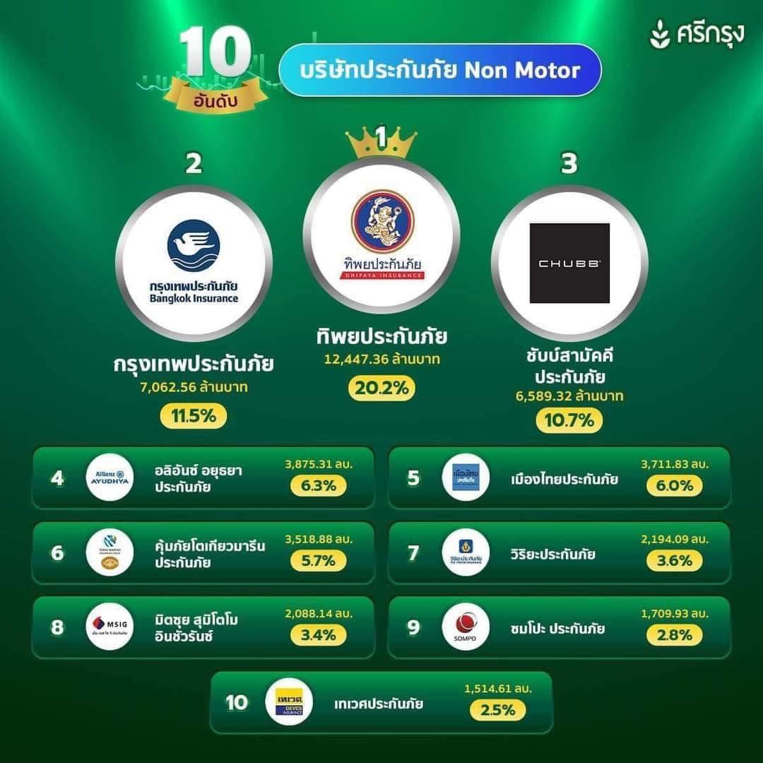 10 อันดับ บริษัทประกันวินาศภัยที่มียอดขายสูงสุดในช่วงเดือน มกราคม - มิถุนายน 2566