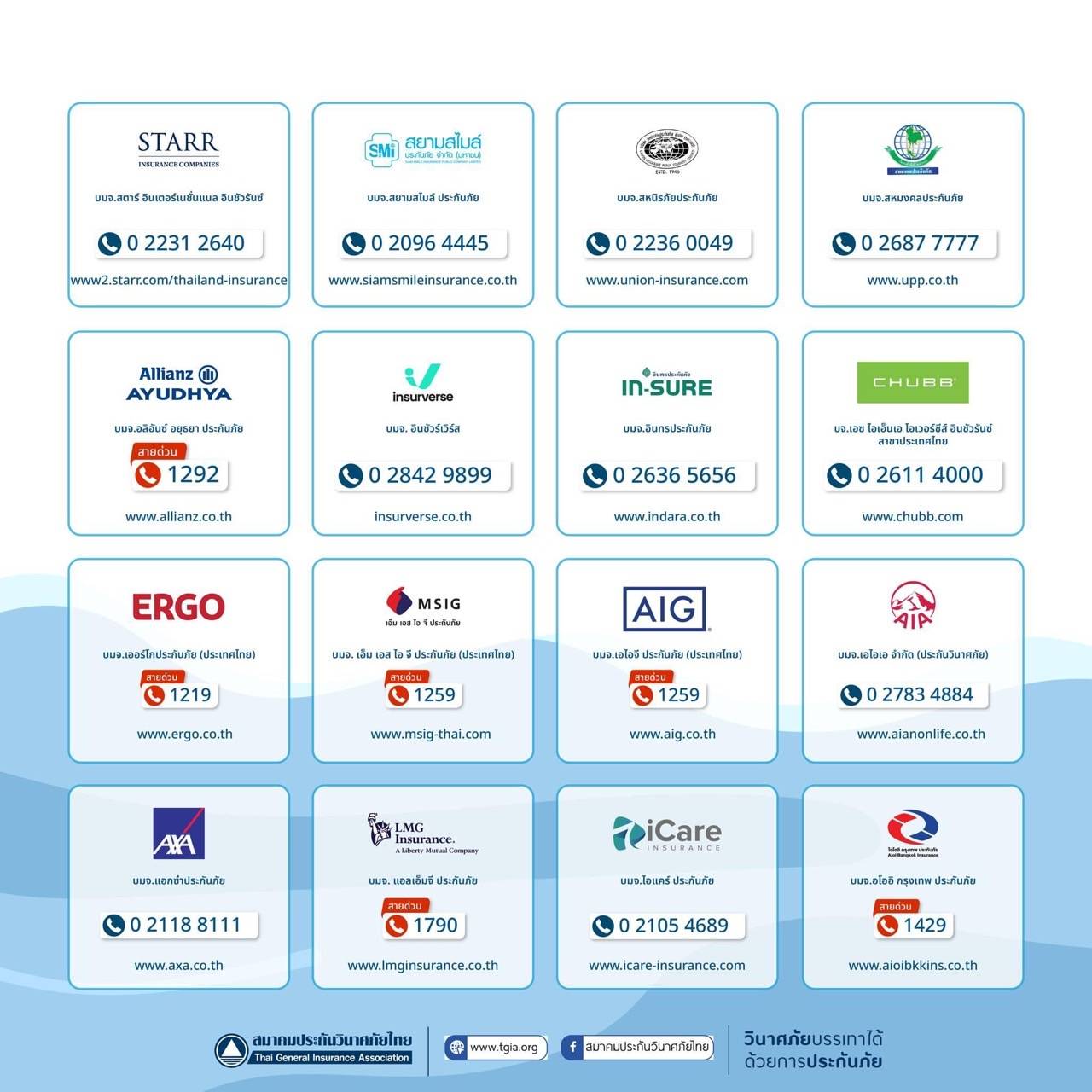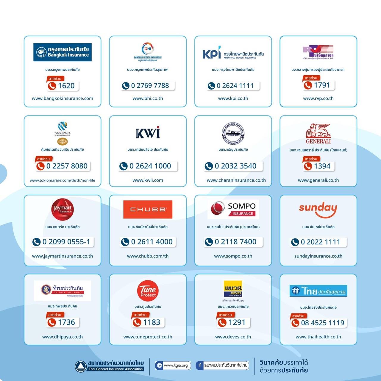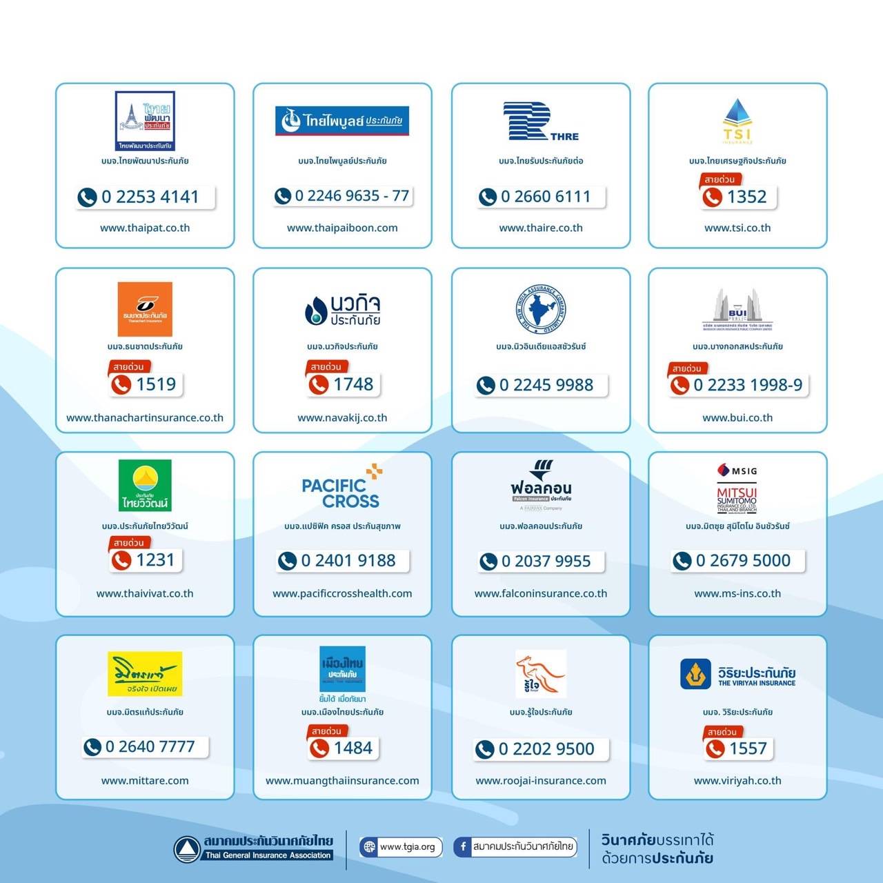รวมเบอร์สายด่วนบริษัทประกันภัยทุกบริษัท เพื่อให้บริการคำแนะนำและความช่วยเหลือด้านประกันภัยทุกประเภท เช็คความคุ้มครอง ข้อมูลกรมธรรม์ รวมถึงการประสานงานกับบริษัทประกันภัยต่าง ๆ เพื่อให้ผู้ประสบภัยสามารถติดต่อเคลมประกันภัย หรือ รับความช่วยเหลือได้อย่างรวดเร็วและครบถ้วน