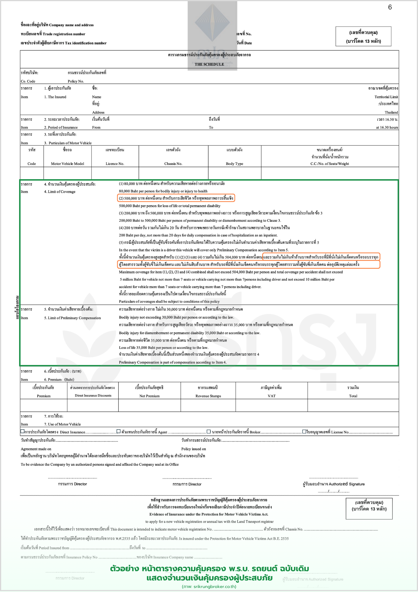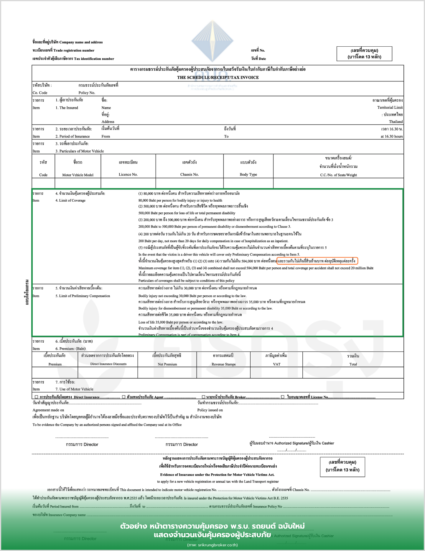 ตัวอย่าง หน้าตารางความคุ้มครอง พ.ร.บ. รถยนต์ ฉบับเดิม
